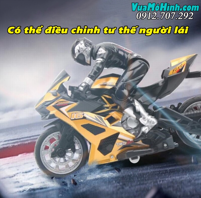 - Xe moto điều khiển từ xa có mô hình người lái ngồi trên có thể thay đổi tư thế tạo dáng và có thể tháo rời