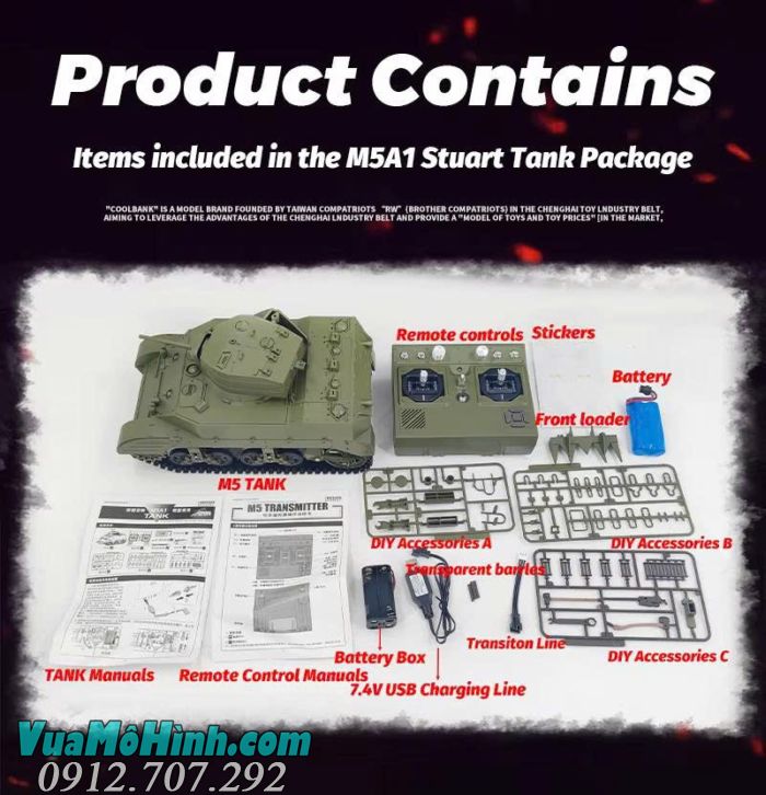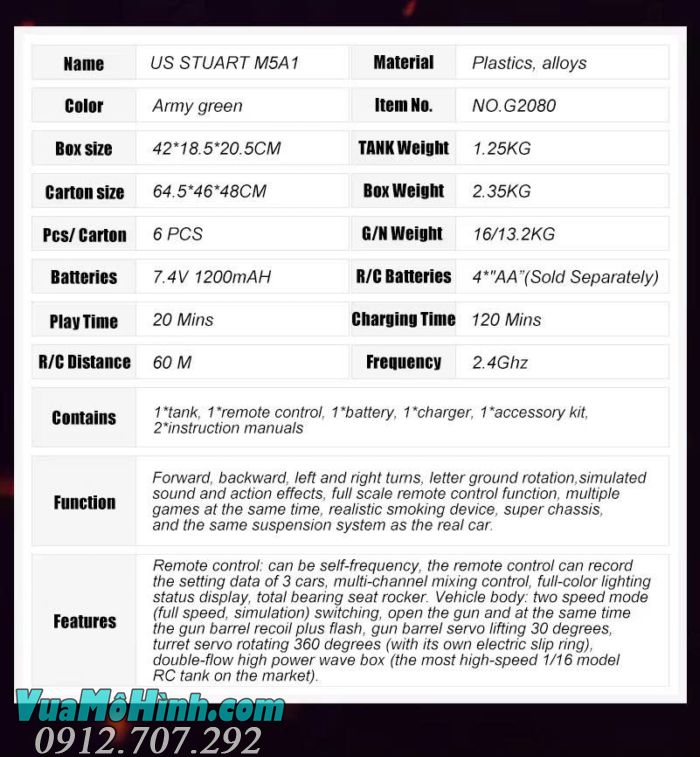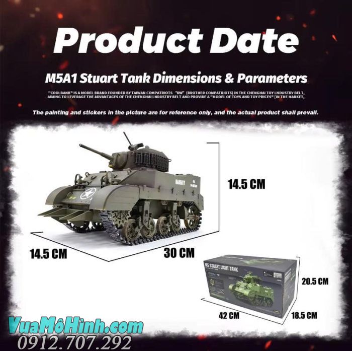 Thông số kỹ thuật Xe Tăng Điều Khiển Từ Xa CoolBank G2080 Stuart M5A1
