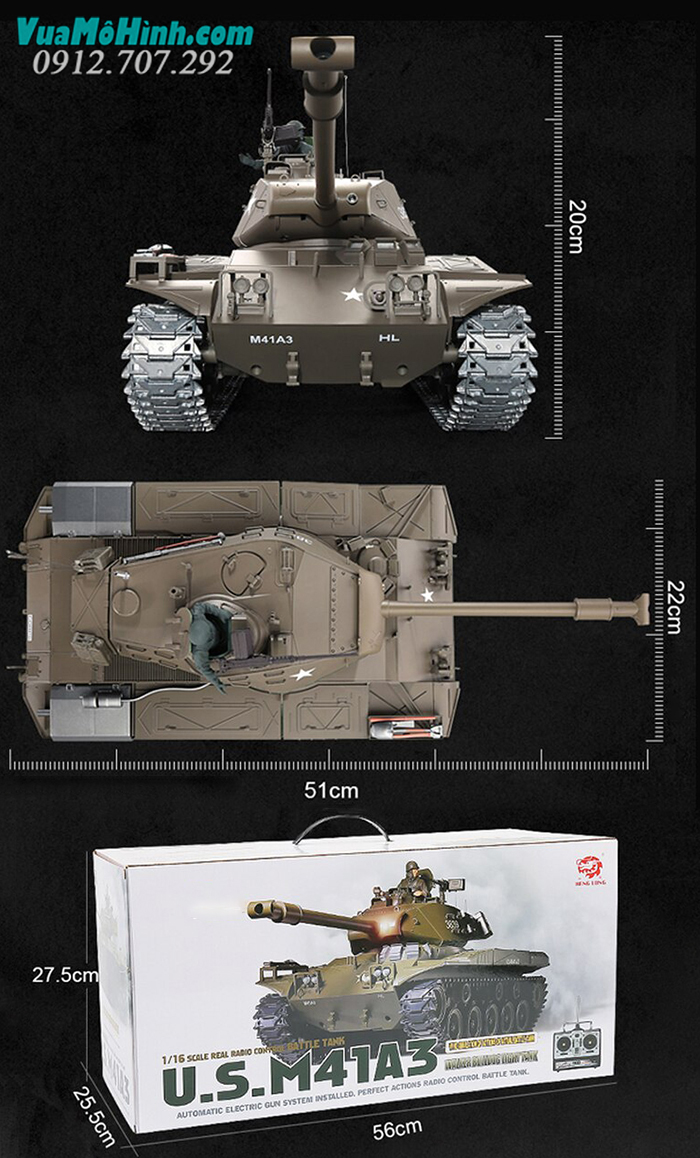 - Xe tăng điều khiển từ xa US M41A3 phiên bản Pro xích kim loại có bán tại Hà Nội và HCM.