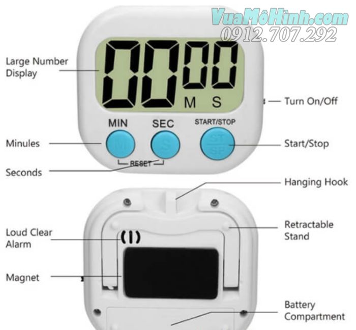 Bạn là người bận rộn, người không kiểm soát được thời gian biểu, người hay quên những buổi gặp mặt quan trọng,... vậy thì hãy để đồng hồ đếm ngược là "thư ký" nhắc nhở bạn Sự bất cẩn trong nấu nướng, ủi đồ, bơm nước... có thể gây nên những hậu quả đáng tiếc (hỏa hoạn, ngập nhà, hư hỏng đồ đạc...). Đồng hồ đếm giây sẽ nhắc nhở bạn sau khi hết thời gian được ấn định Thiết kế nhỏ gọn & sử dụng đơn giản (chỉ có 3 nút bấm); đồng hồ hẹn giờ nấu ăn bỏ túi giúp các bạn nội trợ có thể ấn định thời gian nhắc nhở khi kho thịt, hầm xương, nấu lẩu... & thoải mái làm việc khác mà không bao giờ bị quên.