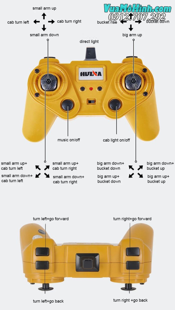 - Tay điều khiển 22 kênh của Xe cuốc điều khiển từ xa cỡ lớn Top Power đầy đủ chức năng hơn tay điều khiển 15 kênh của xe cuốc điều khiển từ xa EXCAVATOR