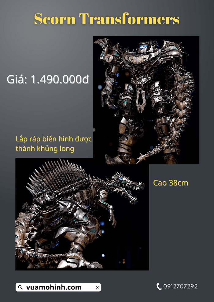 Mô hình Transformers Tiếp theo : trong danh sách này, đó chính là LS-11 (AM-01) Scorn Transformers - Mô hình người máy Rô bốt biến hình khủng long cao 38cm Oversized. Mô hình Transformers Robot Scorn hay còn gọi là Khủng long Scorn chính là chú khủng long được thủ lĩnh Optimus Prime Transformer cưỡi trong phần phim cuối cùng. Chú Robot LS-11 (AM-01) Scorn mô hình Transfomers có ngoại hình cực kì ấn tượng cả ở dạng khủng long cũng như Robot Mô hình Transformers.