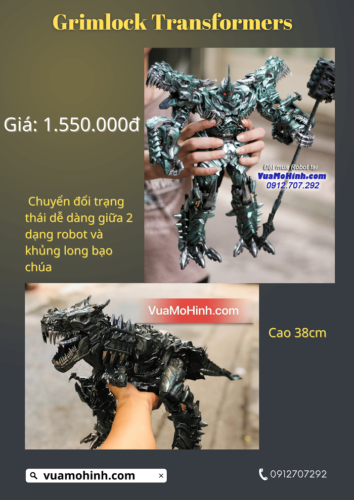 Mẫu mô hình Transformers tiếp theo là: Mô hình nhân vật Grimlock Transformers LS-05 cao 38cm. Một trong những mẫu mô hình transformer độc lạ và sẽ là 1 sự lựa chọn hoàn hảo cho những ai đam mê sưu tầm mô hình Transformers. LS-05 với thiết kế tỉ mỉ và có những nâng cấp mới so với phiên bản cũ đây cũng là một trong những mẫu mô hình rất đáng mua trong tầm giá hơn 1 triệu đồng.