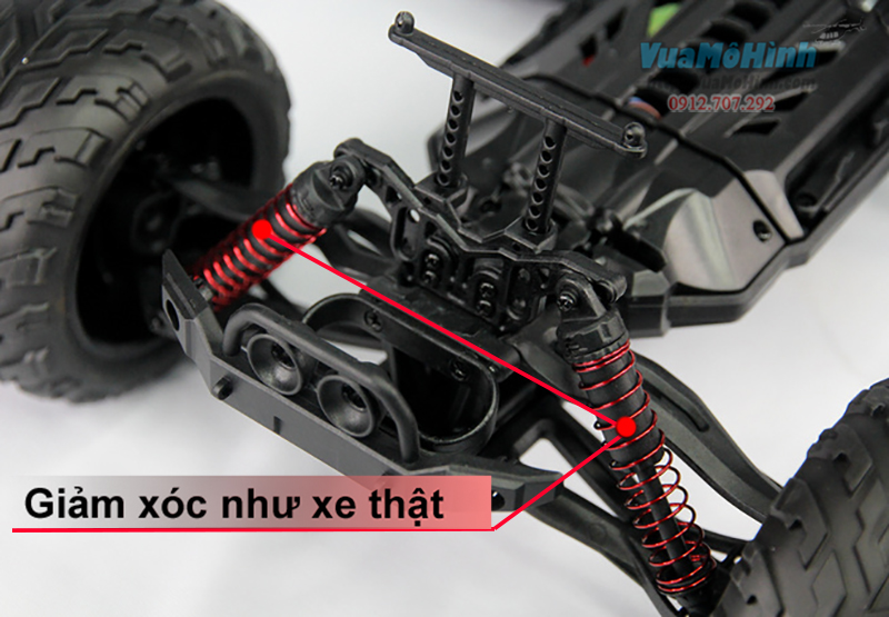 - Được trang bị hệ thống 4 giảm xóc như xe thật và hệ thống trục dẫn động hoàn toàn bằng kim loại. Xe địa hình Monster Truck S911 có thể va chạm khi xe chạy tốc độ cao mà không lo bị hỏng.