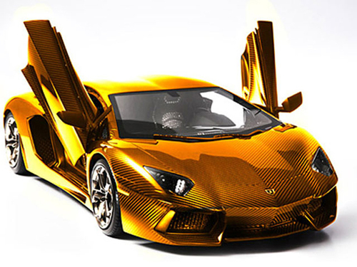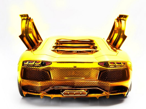 Trong chiếc xe mô hình hân xe dát vàng ròng, hai ghế ngồi gắn 700 viên kim cương. "Siêu xe" phỏng theo chiếc Lamborghini Aventador LP700-4, với tỷ lệ 1:8. Thân và cửa làm từ sợi carbon dát vàng, vành xe được đúc từ vàng ròng.