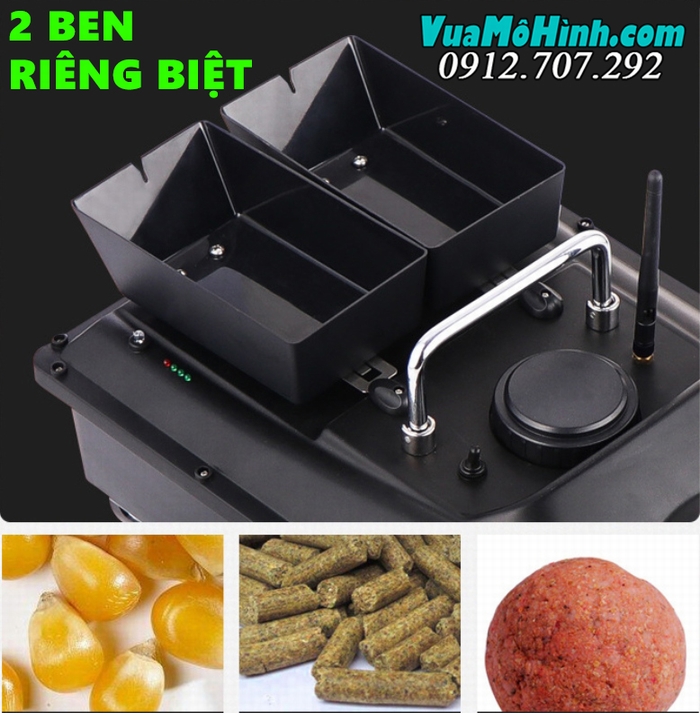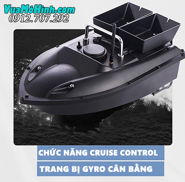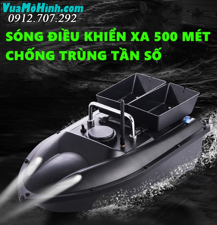 -Sóng điều khiển: Sóng điều khiển 2.4Ghz chống trùng tần số giữa nhiều tàu thả thính giống nhau, sóng khỏe gấp 10 lần so với sóng cũ 27Mhz (loại anten rút). Trên tàu thả mồi câu còn có cột anten thu sóng để tăng khoảng cách điều khiển tối đa lên đến 500 mét.