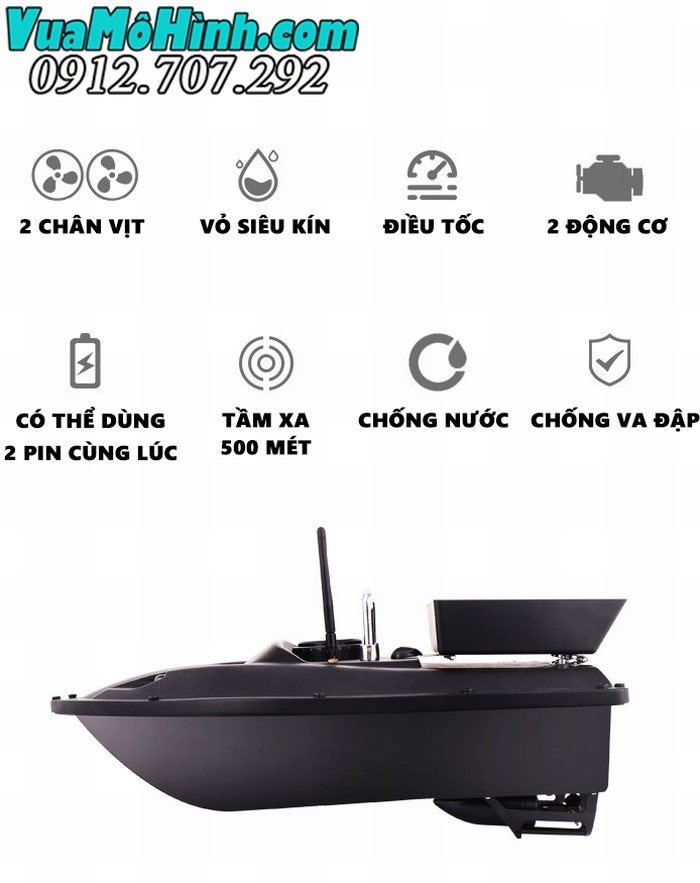 - Phụ tùng sửa chữa sẵn có : Thuyền thả thính xa bờ cung cấp đầy đủ linh kiện, phụ tùng để khách hàng có thể sửa chữa : vỏ tàu, bo mạch, động cơ, tay điều khiển , pin, sạc, chân vịt,.. Nhờ đó khách hàng có thể an tâm sử dụng lâu dài. Đặc biệt khách hàng mua tàu thả thính tại Vua Mô Hình được hỗ trợ miễn phí tiền công sửa chữa trọn đời.